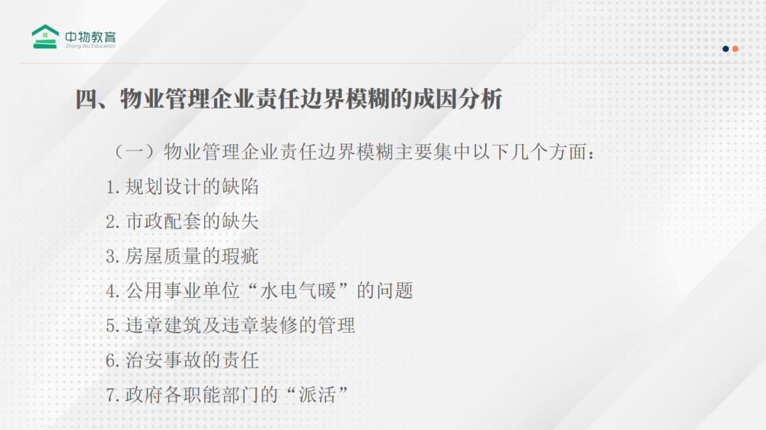 对于物业管理责任边界模糊的成因,雷昭新律师分析其主要源于规划设计缺陷、市政配套缺失、房屋质量问题等客观因素,以及物业服务企业自身定位不明、业主期望过高、政府职能交叉等主观与外部因素。这些问题导致了行业矛盾频发,影响了物业服务的质量与效率。