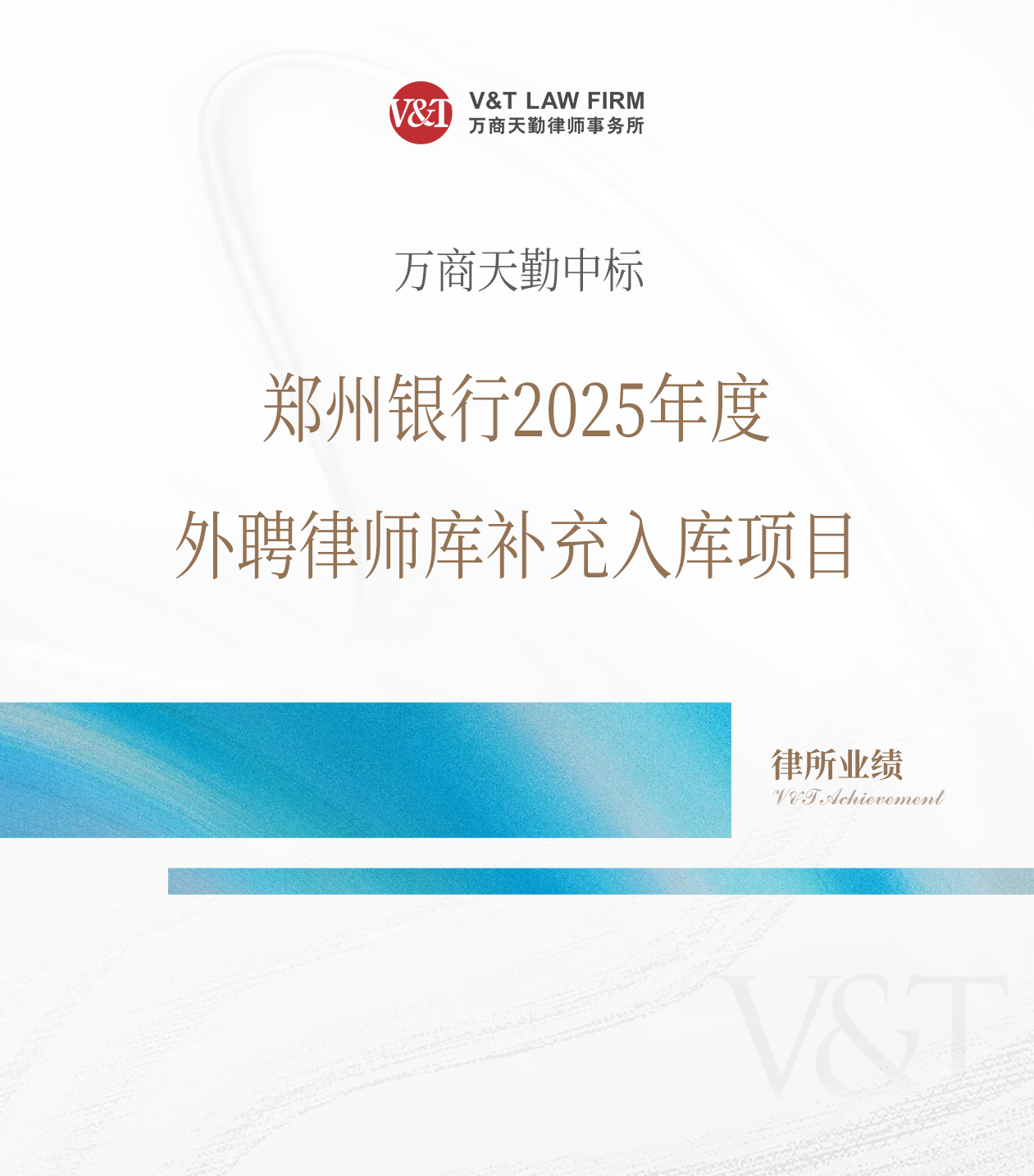 V&T 业绩|万商天勤中标郑州银行2025年度外聘律师库补充入库项目