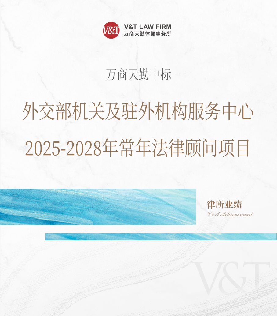 近日,万商天勤成功中标外交部机关及驻外机构服务中心2025-2028年常年法律顾问服务项目。本项目由北京办公室合伙人卢二松律师担任项目负责人,石有明、王世存、许潇律师组成核心团队。