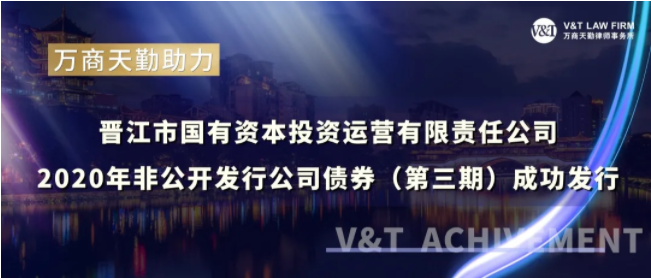 V&T 业绩|万商天勤助力“晋江市国有资本投资运营有限责任公司2020年非公开发行公司债券(第三期)”成功发行